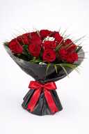 Buchetul contine 17 trandafiri rosii,2 gypso,verdeata ,ambalaj negru