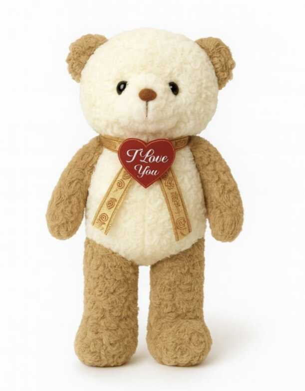 Ursulet de plus maro deschis cu alb cu inima ï love you"-50 cm