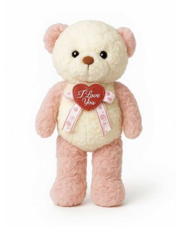 Ursulet de plus roz deschis cu alb cu inima ï love you"50 cm